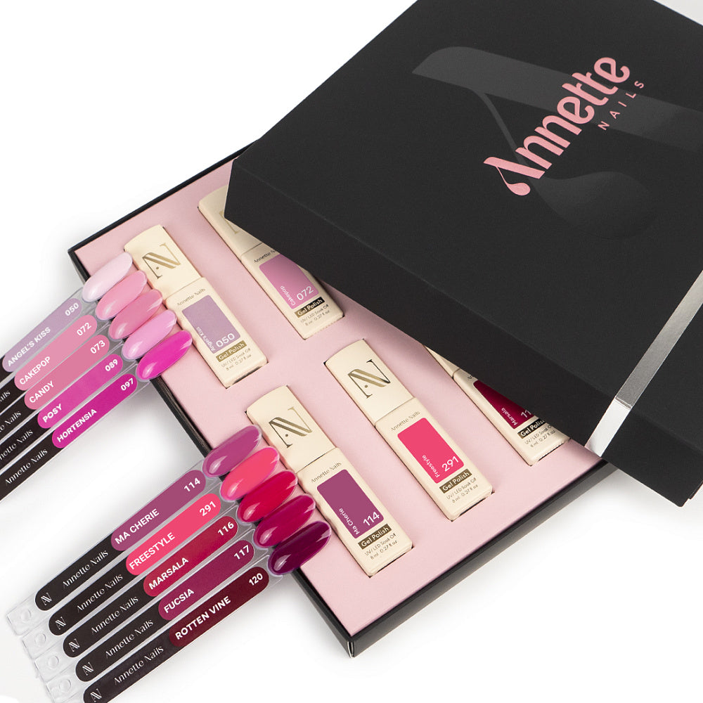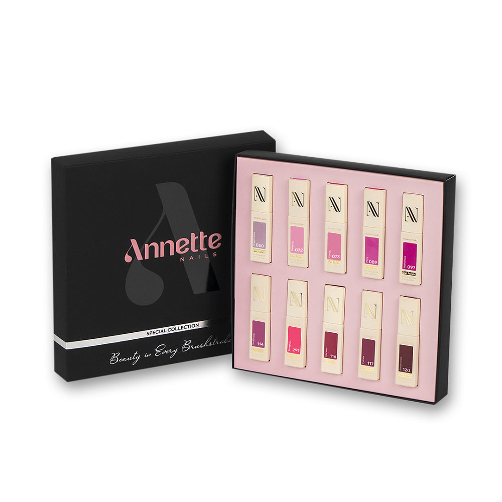 Ojele semipermanente AnnetteNails au o textură cremoasă și conțin microparticule, datorită cărora se nivelează ușor, fără scurgeri sau uniformități pe laterale sau vârf. Ojele se pot aplica fie peste baza rubber (sistemul soak off), fie peste materialele dure precum (gel, acrygel/polygel).
