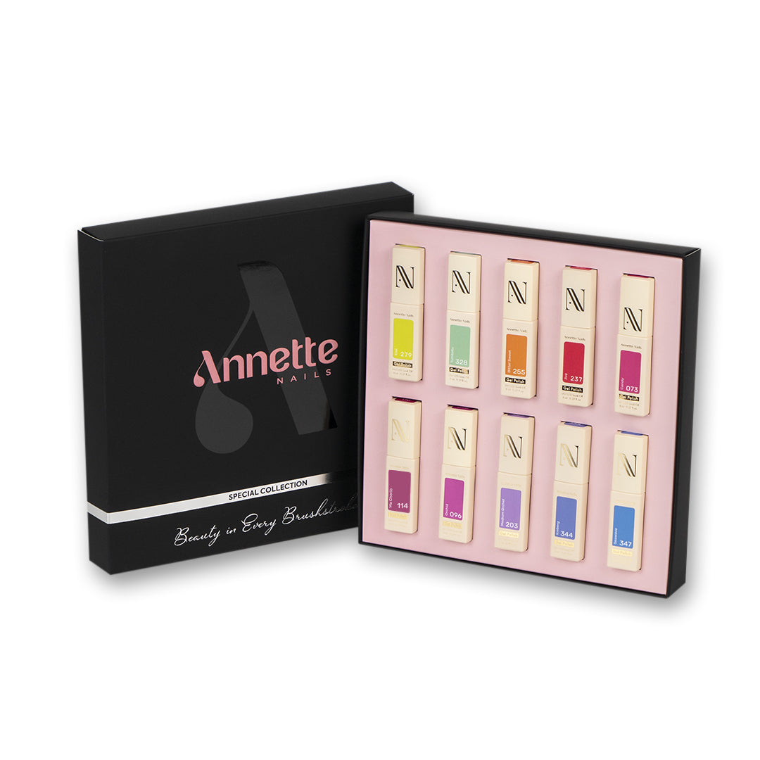 Ojele semipermanente AnnetteNails au o textură cremoasă și conțin microparticule, datorită cărora se nivelează ușor, fără scurgeri sau uniformități pe laterale sau vârf. Ojele se pot aplica fie peste baza rubber (sistemul soak off), fie peste materialele dure precum (gel, acrygel/polygel).