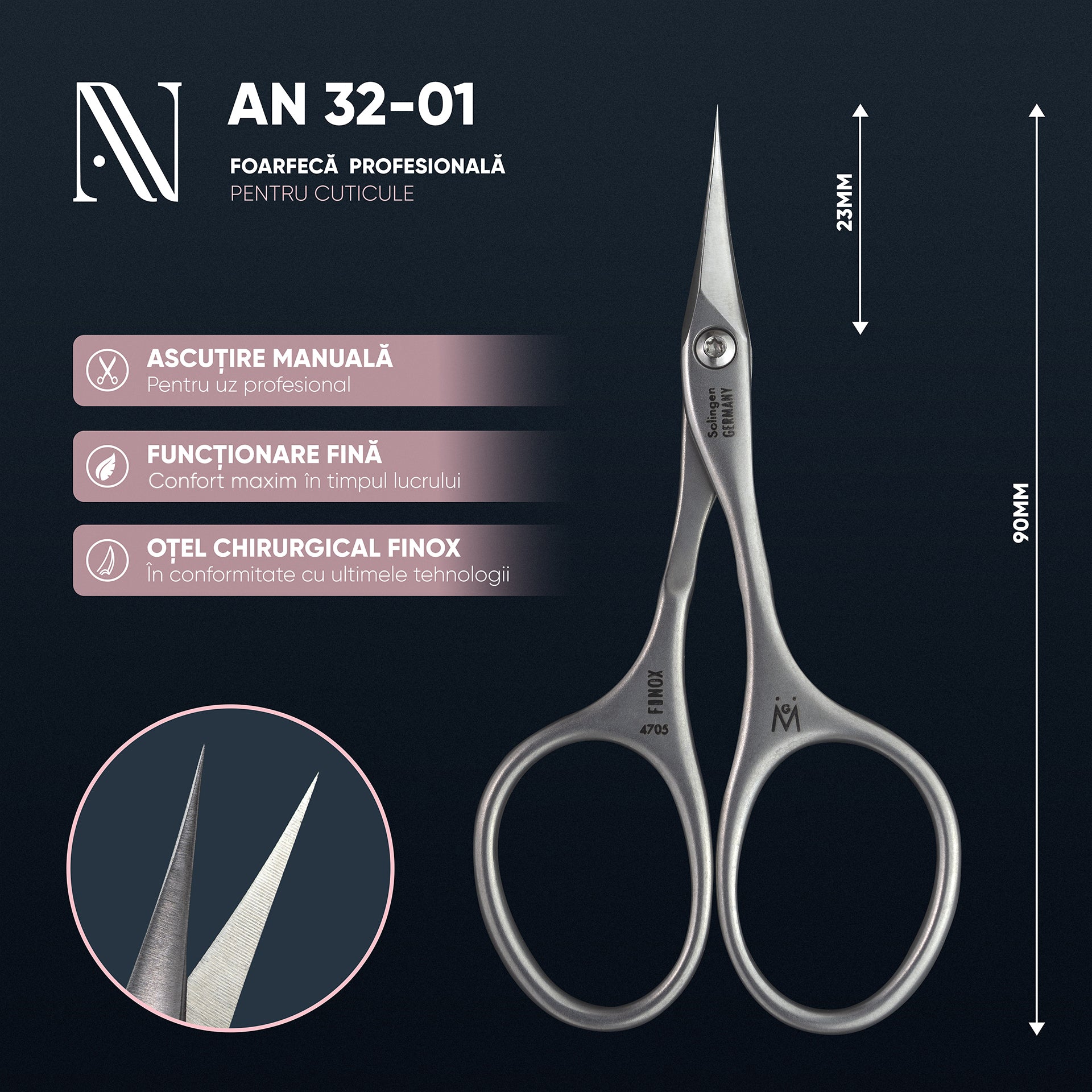 Forfecuța pentru cuticule Unique, este un instrument creat în conformitate cu ultimele tehnologii. De la un capăt la celălalt, acesta a fost gândit cu atenție la detalii. Mânerul ergonomic îl diferențiază de alte modele și ajută la reducerea efortului în timpul utilizării. Vârful precis, cu o lamă fină și grad de curbare optimizat, garantează o tăiere perfectă a cuticulei. Realizată din oțel inoxidabil de calitate superioară, această forfecuță este produsă industrial, dar dispune de ascuțire manuală ulterioară. Descoperă un instrument de calitate superioară pentru îngrijirea cuticulelor tale.Tip Ascuțire: Manuală