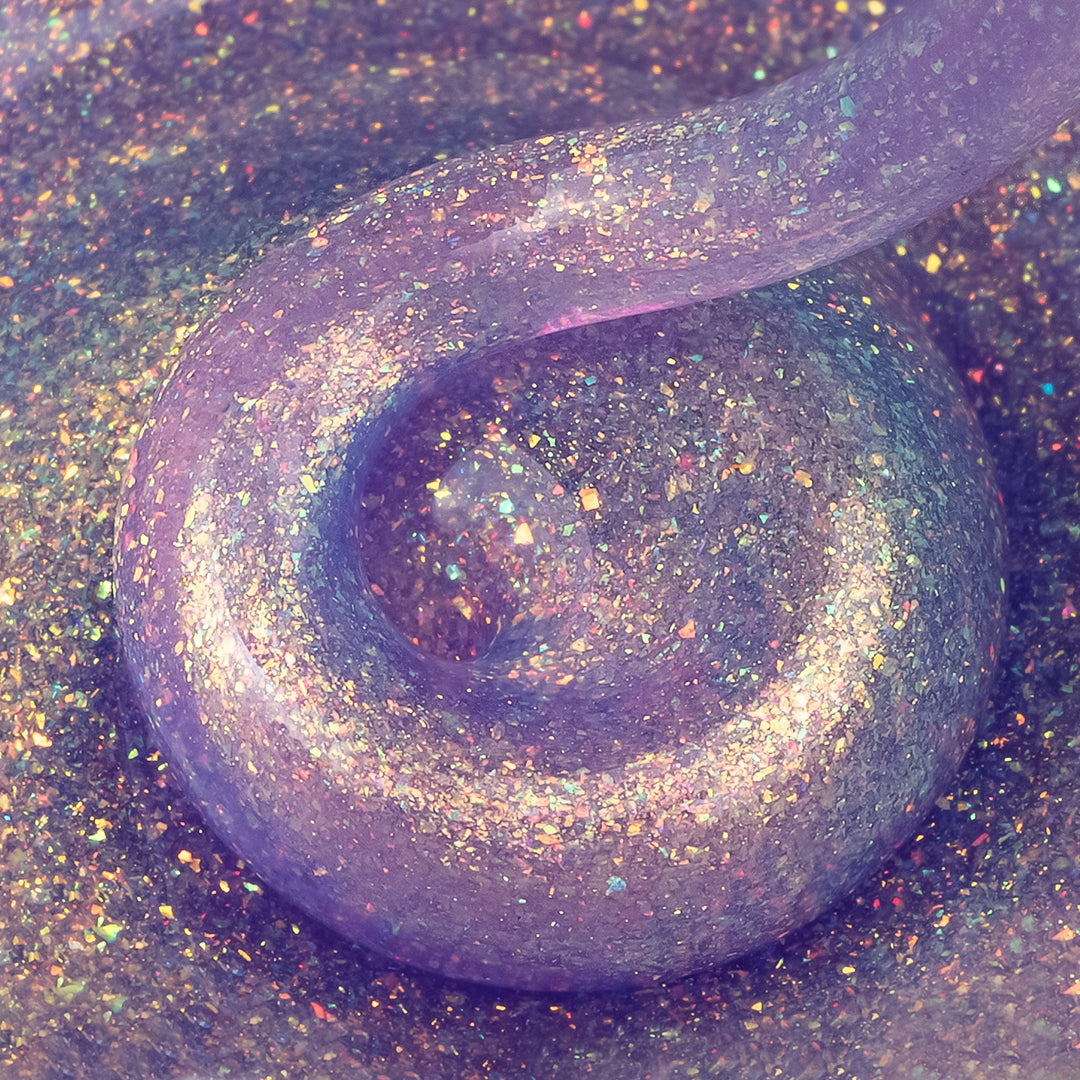 - Gamă de culori delicate, cu o cantitate mare de sclipici holografic și aspect translucid;