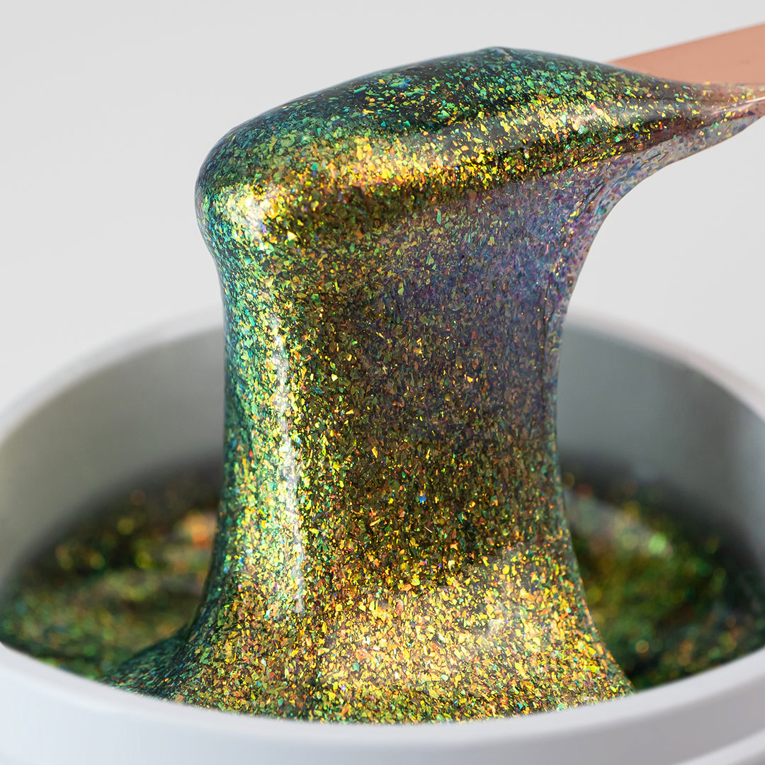 - Gamă de culori delicate, cu o cantitate mare de sclipici holografic și aspect translucid;