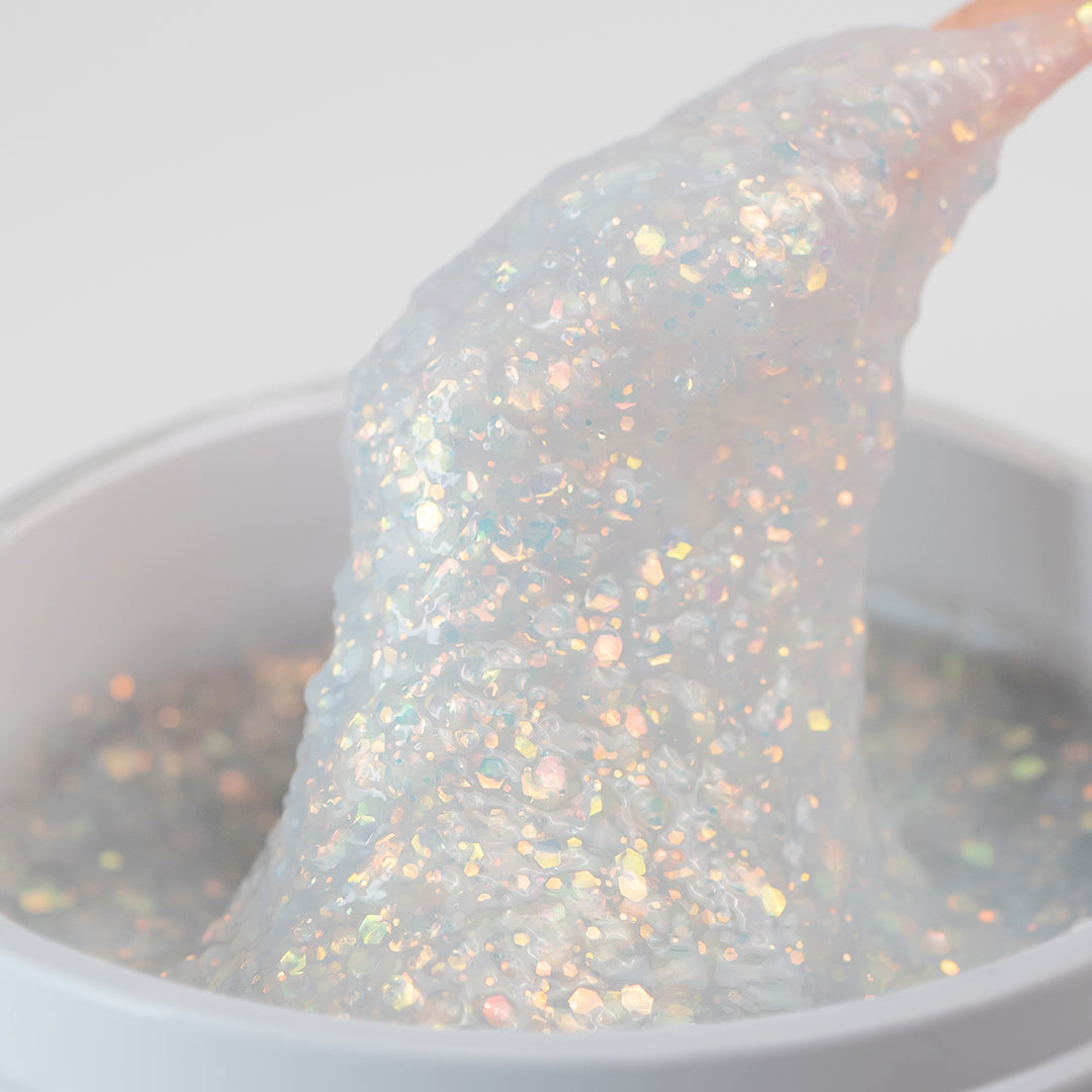 - Gel de construcție în nuanțe diafane, îmbogățit cu o cantitate mare de sclipici și paiete;