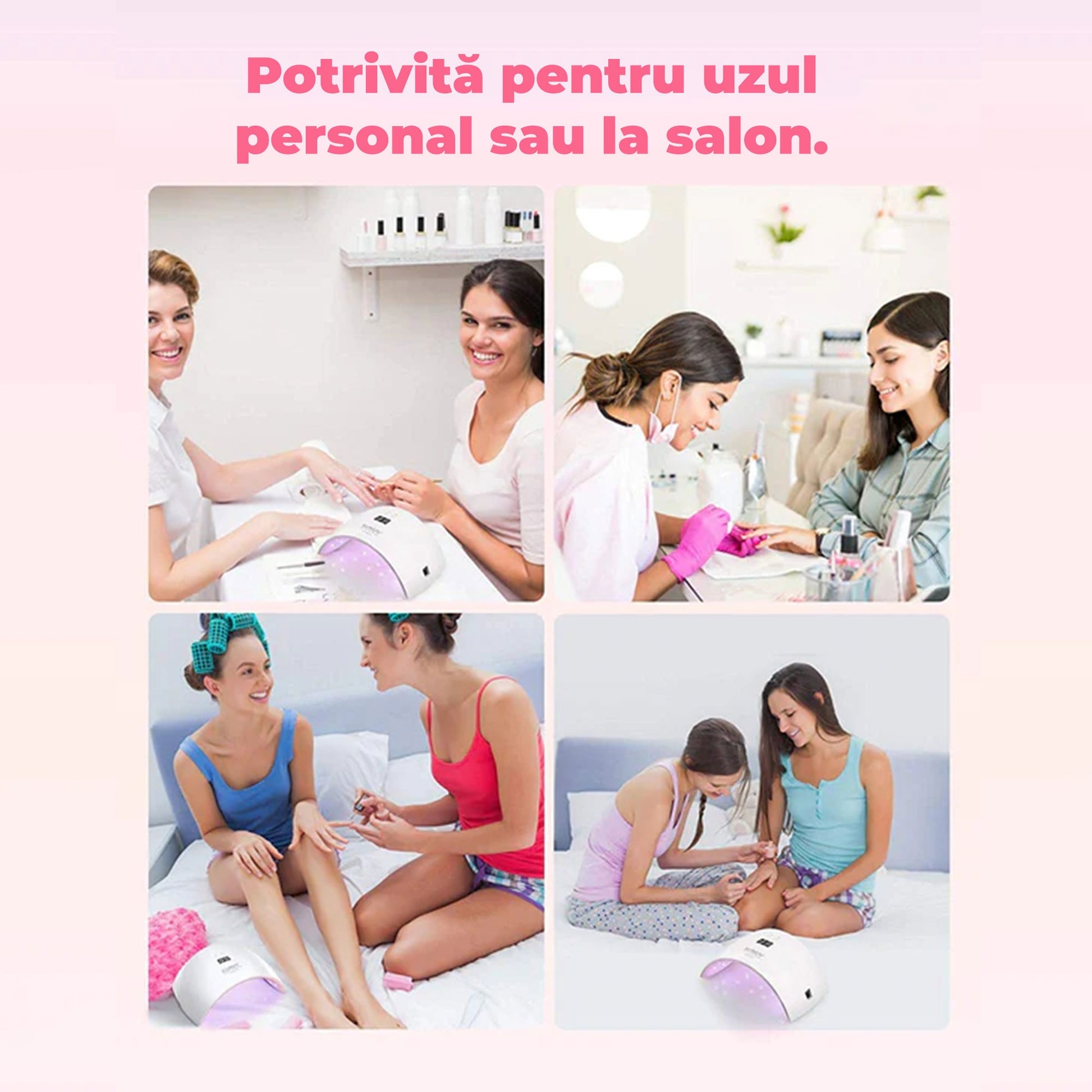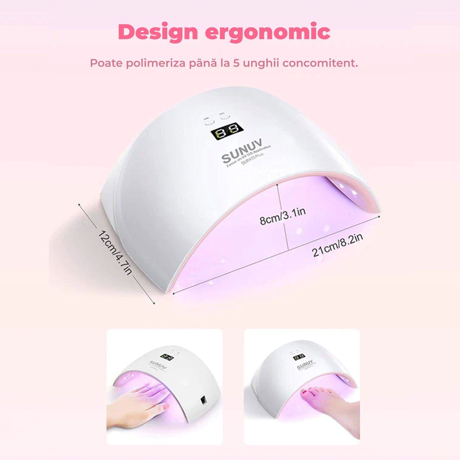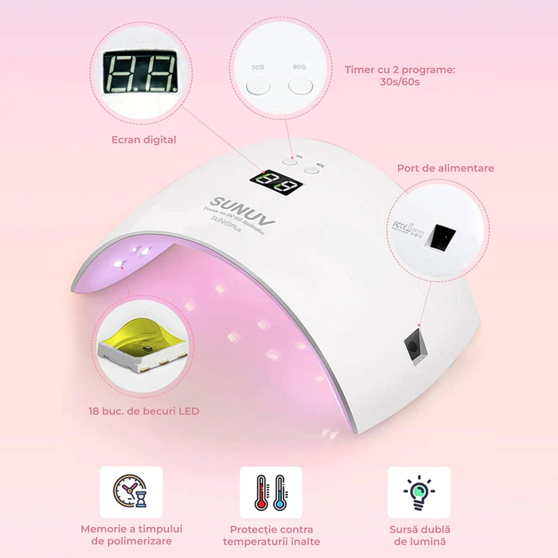 Tehnologia cu sursă dublă de lumină acoperă un spectru UV mai larg și este potrivită pentru polimerizarea ojelor semi și a gelurilor dure.