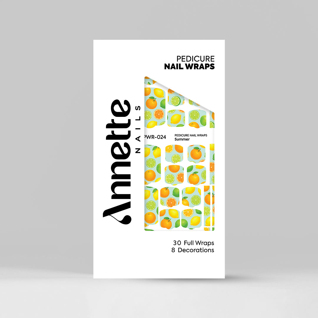 Pedicure Nail Wraps Annette Nails sunt stickere autoadezive pentru unghii, special concepute pentru crearea designurilor sofisticate pe unghii, indiferent de tehnica folosită: pedichiură clasică sau pedichiură semipermanentă. Wrapurile sunt una dintre cele mai populare tehnici pentru decorarea unghiilor și reprezintă o alternativă rapidă și eficientă la pedichiura cu oja semipermanentă. Acestea pot fi utilizate inclusiv pentru uz personal, oferind fiecărei femei posibilitatea de a-și realiza singură o pedichiură cu design deosebit și rezistență extinsă.