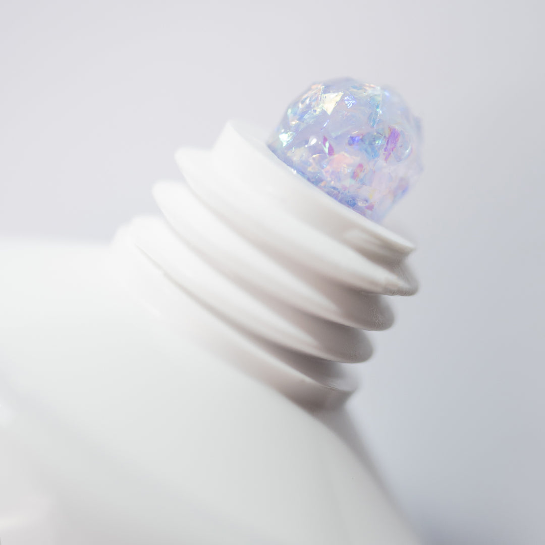 Glitter 50: Polygel transparent, cu irizații puternice de fulgi de gheață, ideal pentru o manichiură french glass care iese din tipare.