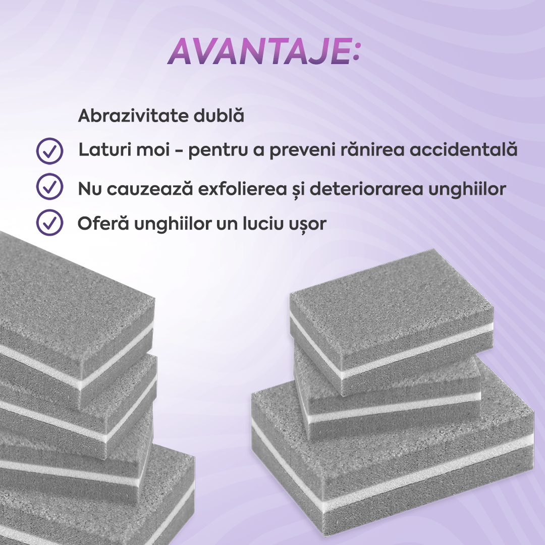 Prin achiziționarea setului de 50 de mini buffere Annette Nails, beneficiați de un stoc suficient pentru un timp îndelungat, optimizându-vă fluxul de lucru și economisind pe termen lung datorită prețului avantajos.
