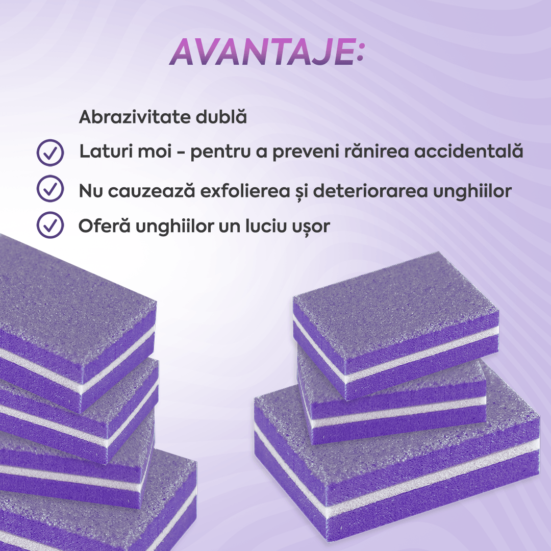 Prin achiziționarea setului de 50 de mini buffere Annette Nails, beneficiați de un stoc suficient pentru un timp îndelungat, optimizându-vă fluxul de lucru și economisind pe termen lung datorită prețului avantajos.