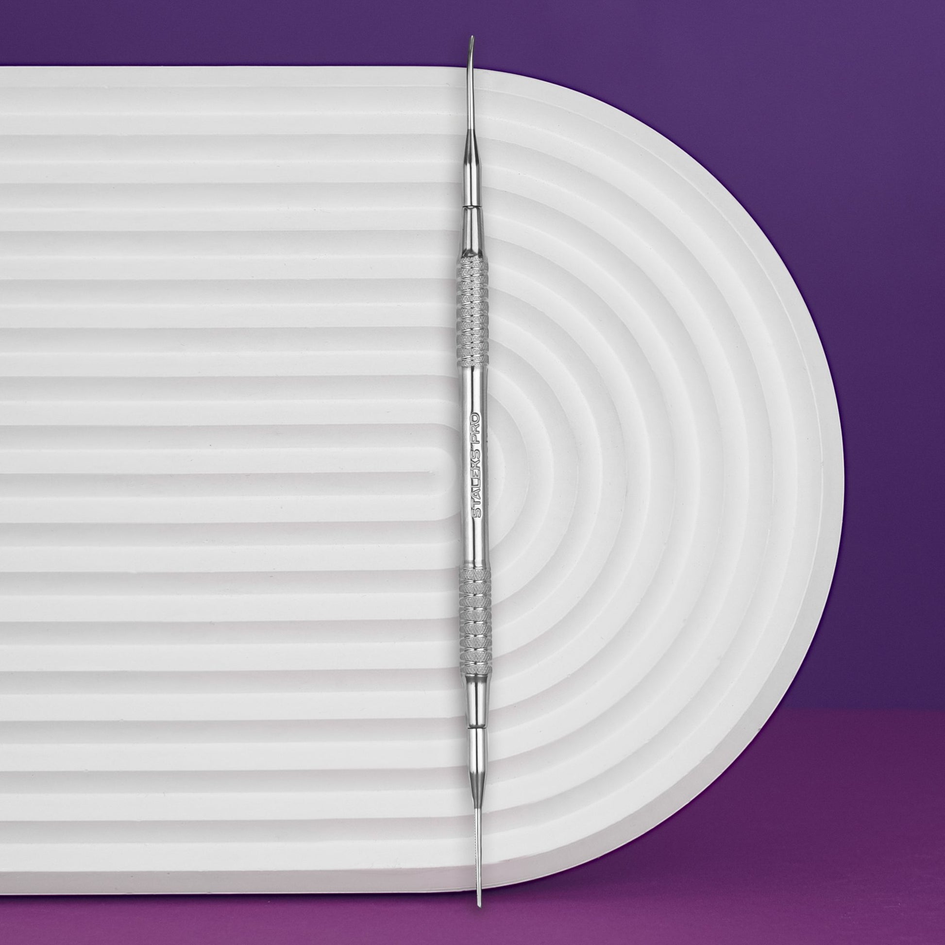 Instrumentul dublu, format dintr-o „pilă subțire dreaptă” și o „pilă subțire cu capăt curbat”. Este utilizat pe scară largă pentru îndepărtarea lateralelor și corecția unghiilor încarnate, după tratarea lor preliminară cu produse speciale pentru pedichiură. Fabricat din oțel inoxidabil(08X18H10 (AISI 304) , oferă o calitate evidentă, resimțită, mai ales în timpul utilizării. Rezistență suplimentară la coroziune, asigurată prin lustruire cu pastă GOI.Material: Oțel Inoxidabil