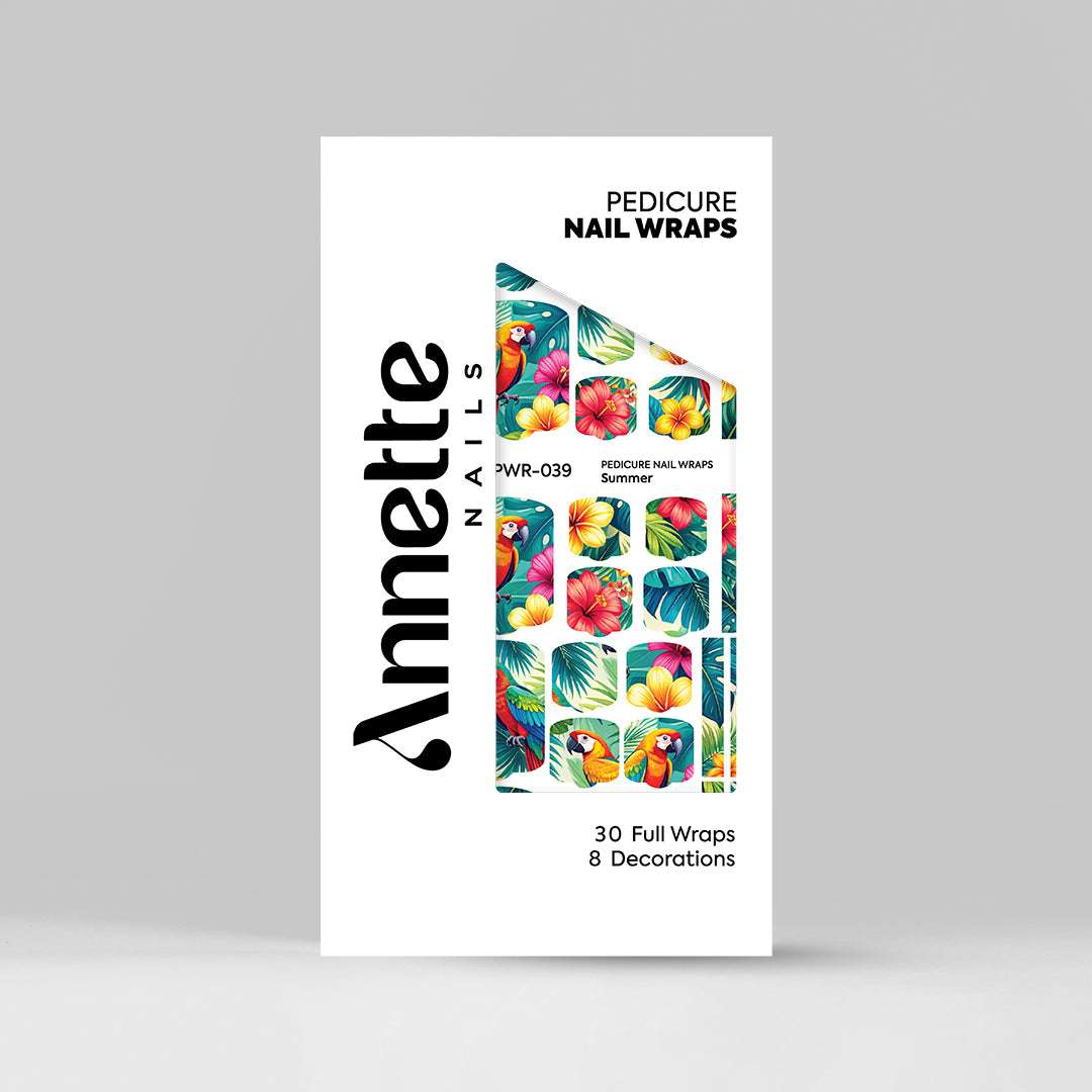 Pedicure Nail Wraps Annette Nails sunt stickere autoadezive pentru unghii, special concepute pentru crearea designurilor sofisticate pe unghii, indiferent de tehnica folosită: pedichiură clasică sau pedichiură semipermanentă. Wrapurile sunt una dintre cele mai populare tehnici pentru decorarea unghiilor și reprezintă o alternativă rapidă și eficientă la pedichiura cu oja semipermanentă. Acestea pot fi utilizate inclusiv pentru uz personal, oferind fiecărei femei posibilitatea de a-și realiza singură o pedichiură cu design deosebit și rezistență extinsă.