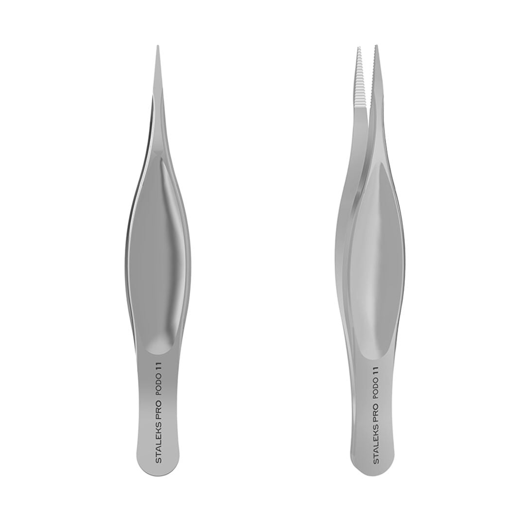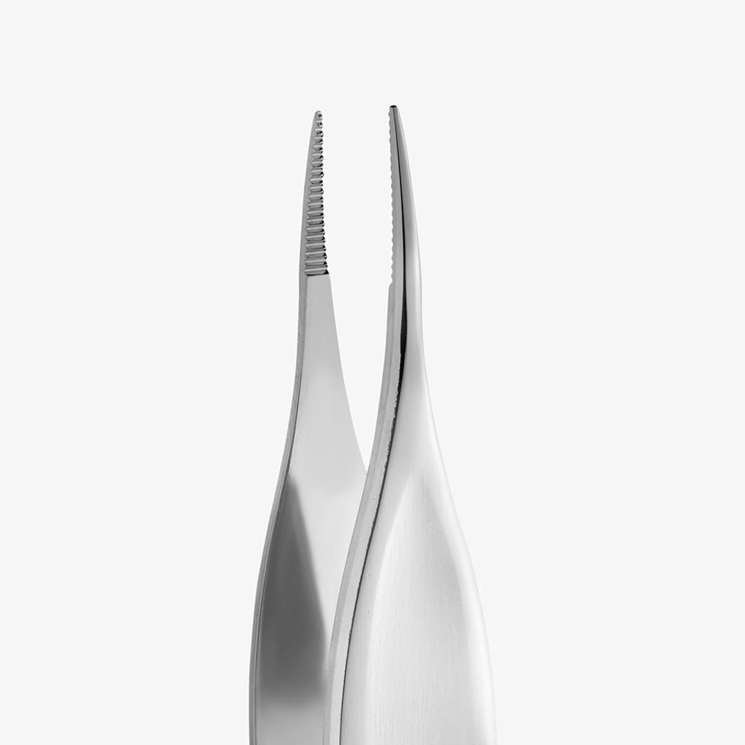Are părți de lucru subțiri și lungi, cu crestături care captează și țin în mod fiabil chiar și cele mai mici părți ale plăcii unghiale. Potrivită pentru îndepărtarea micilor fragmente de epidermă, obiecte străine de pe răni sau creste laterale. Se potriveste confortabil in mana datorita formei ergonomice. Este fabricată din oțel inoxidabil rezistent la rugină și la toate tipurile de sterilizare și dezinfecție.