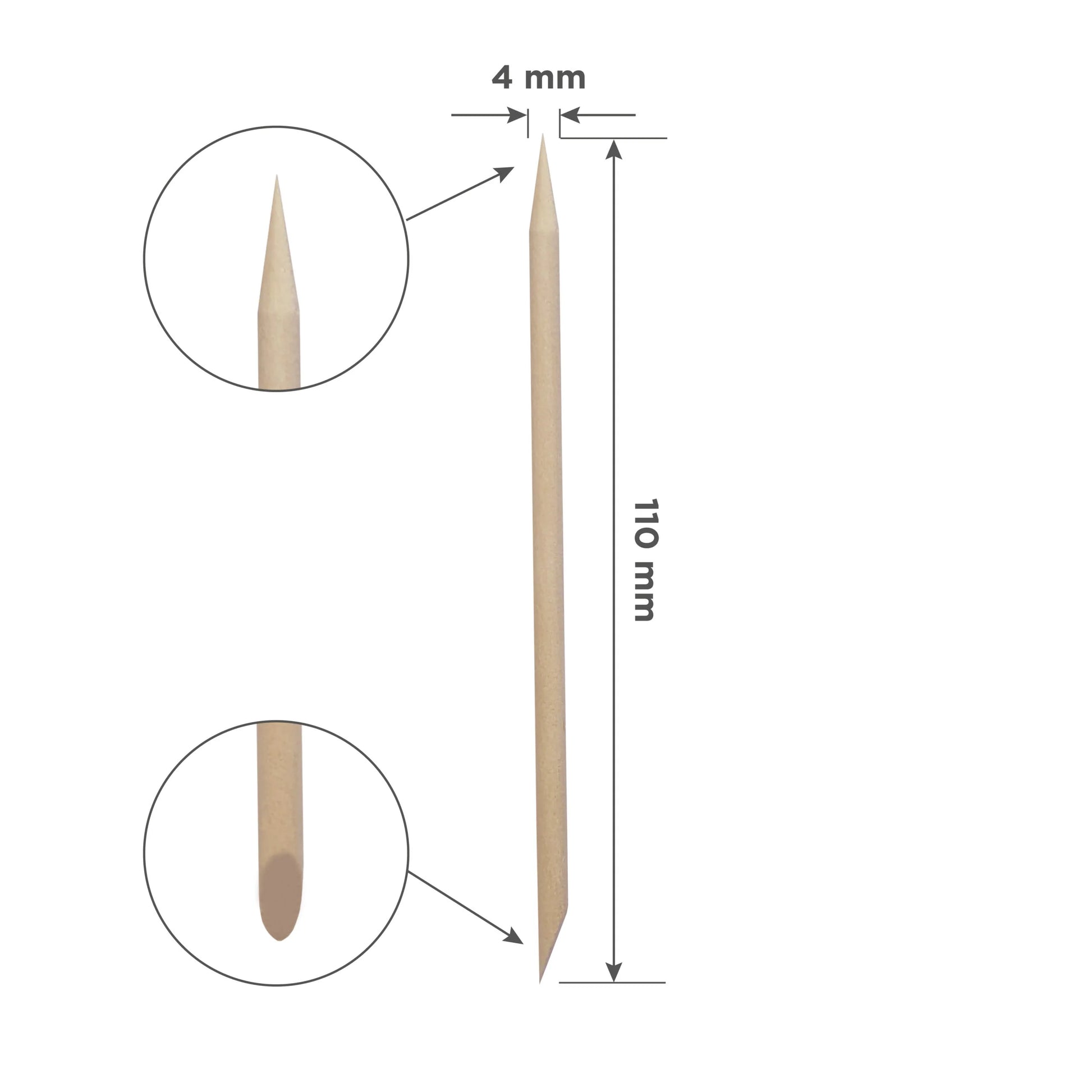 Setul de bețișoare pentru manichiură și pedichiură este alegerea perfectă pentru îndepărtarea cu precizie a excesului de ojă sau pentru împingerea cu delicatețe a cuticulelor. Fiecare bețișor are un capăt ascuțit și celălalt tăiat oblic, oferindu-ți dimensiunile ideale pentru o utilizare comodă și precisă.Aceste bețișoare sunt proiectate pentru a fi utilizate o singură dată, ceea ce nu doar sporește nivelul de igienă și siguranță, dar și asigură o practică simplă și conformă cu standardele sanitare. Mai mult, sunt confecționate din lemn, ceea ce le face ușor de reciclat, contribuind la protejarea mediului.