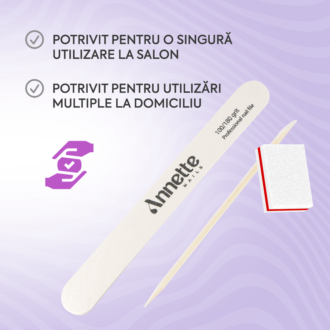 Setul de Manichiură Annette Nails Mare se poate folosi atât în pilirea și pregătirea unghiilor naturale, cât și în finisarea unghiilor tehnice.